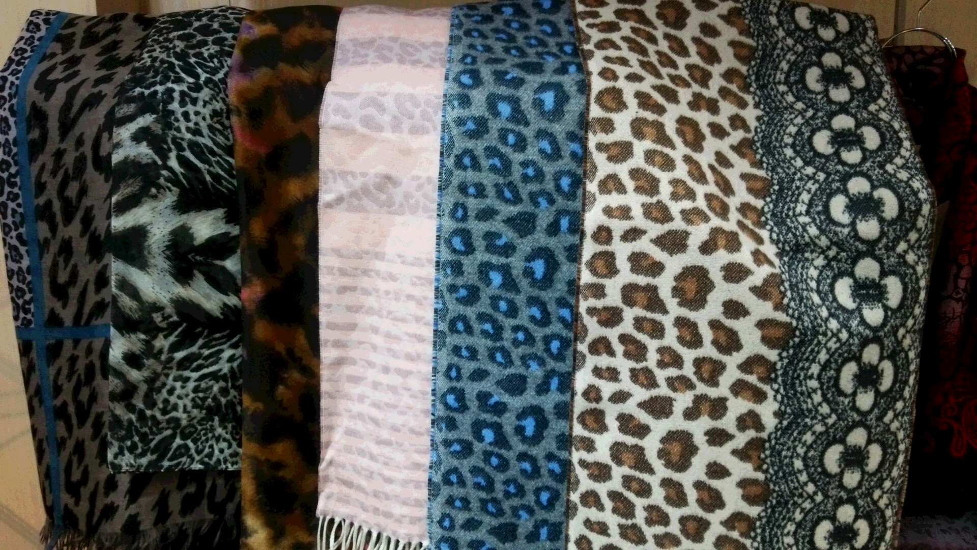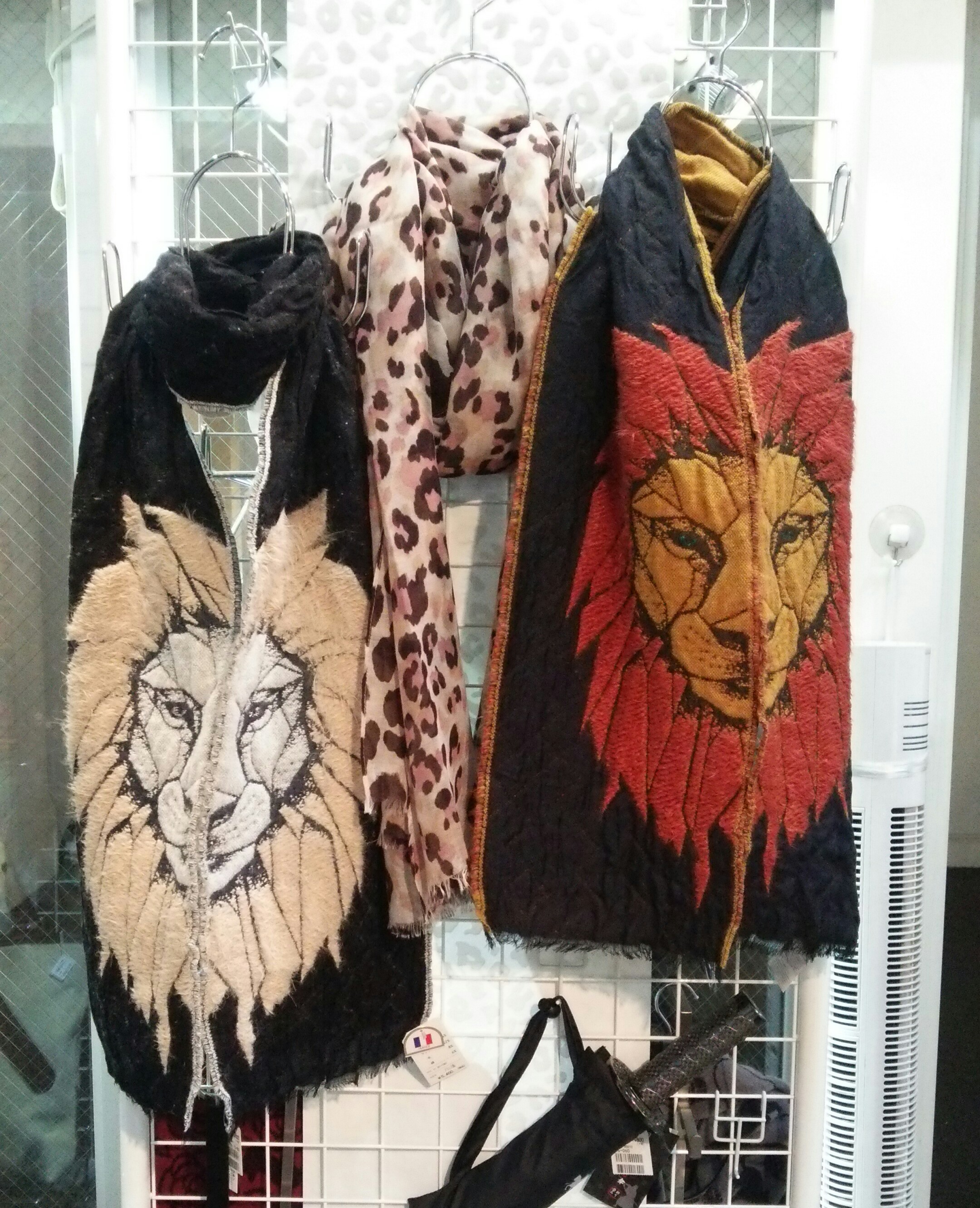 パルティーナの店内に80数種類のストール、マフラーを取り揃えました。