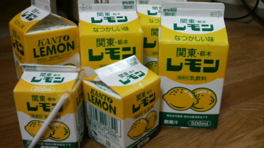 スタッフからの お土産のリクエストが! ケンミンショーで話題になった 【レモン牛乳】 タップリ買い込みましたが、 名前は 【 関東・栃木レモン】なんだよね! 名前が変わったのかね? 味は 僕が子供の頃、、、 故郷岡山の 県営プールの味がしました。 セピア色の記憶の中の 麦わら帽子にベルトの付いた水着、 水から上がって ふやけた指で 顔ぜんぶ使ってゴクゴク飲んだ 名前も忘れた あの時の飲み物の味でした。 この説明でわかりますか? つまり 栃木県で有名になったけど 似たような味の飲み物が 岡山にもあったと言う事ですが 、 久し振りで 懐かしい味で美味しかったです。 テイスティング希望の方は 賞味期限が18日までなので、お早めに 弊社までお越し下さい。 |