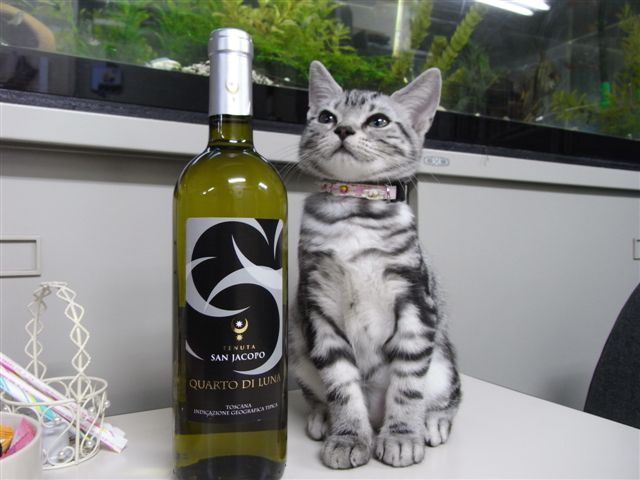 さて 私が留守中に会社には 弊社の新入社員 ルナちゃんの入社を祝って 桜新町の桑名屋さんから ワインが届いていました。 ルナと言う名のワインだそうで 本人も興味津津ですが、まだ未成年?なので飲めませんね。 このルナちゃんに うり吉君がオリエンテーリングをしていますが、なかなか思うように進んでいないらしく うり吉君は 会社での居眠りままならず 緊張の中 仕事をしているようで なんだか引き締まった感じがしますが はたして 彼の心中はいかがなものか? 当面 この二匹 いや!二人に注目です。