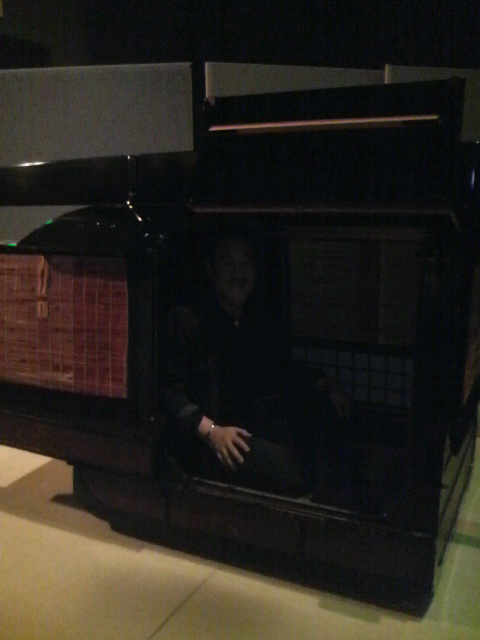 猫展では 夏目漱石の「吾輩は猫である」のように 猫のいろいろな文献や絵画が展示されていましたが、、、 常設展の 江戸の歴史、東京の歴史を楽しませてくれる 多くの展示品や演出に時間を忘れて見入ってしまいました。 写真は 大名になったつもりになれるアトラクション 本物の大名籠に乗ってみました。 他にも千両箱のレプリカや 纏<まとい>を持ってみたり 数時間があっという間に過ぎて行きました。 東京観光の一つに加えても良い場所ですね。 お時間がある時に立ち寄ってみてください。